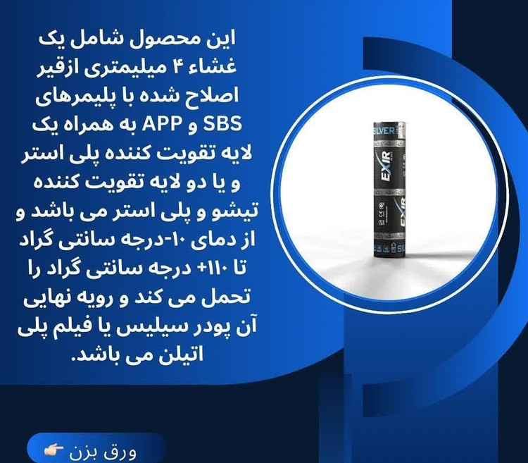از تولیدات شرکت صدف گستر دلیجان در زمینه عایق های رطوبتی ساختمان می باشد. حفظ خواص فیزیکی در شرایط آب و هوایی گرم و معتدل و مناطق سردسیر از ویژگی های این محصول به شمار می رود.